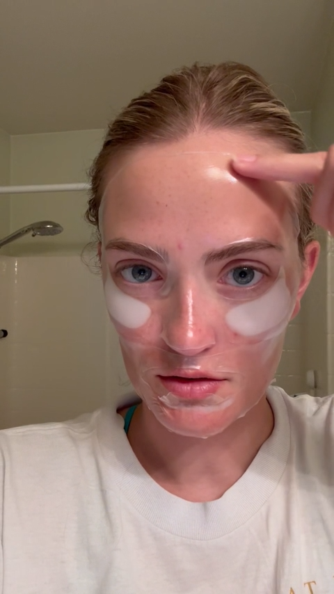 J'adore ce masque, c'est une très bonne hydratation pour le visage, il ne laisse pas de sensation collante ou grasse sur la peau. Vous devez d'abord l'appliquer avec la feuille de plastique, puis retirer la feuille de plastique et fixer lentement le masque avec le bout de votre doigt, très doucement et lentement, et le laisser agir. Votre peau commencera à absorber le liquide et commencera à se tendre sur votre visage. J'ai dormi avec, mais ce n'est pas une bonne idée, cela perturbe un peu votre sommeil.